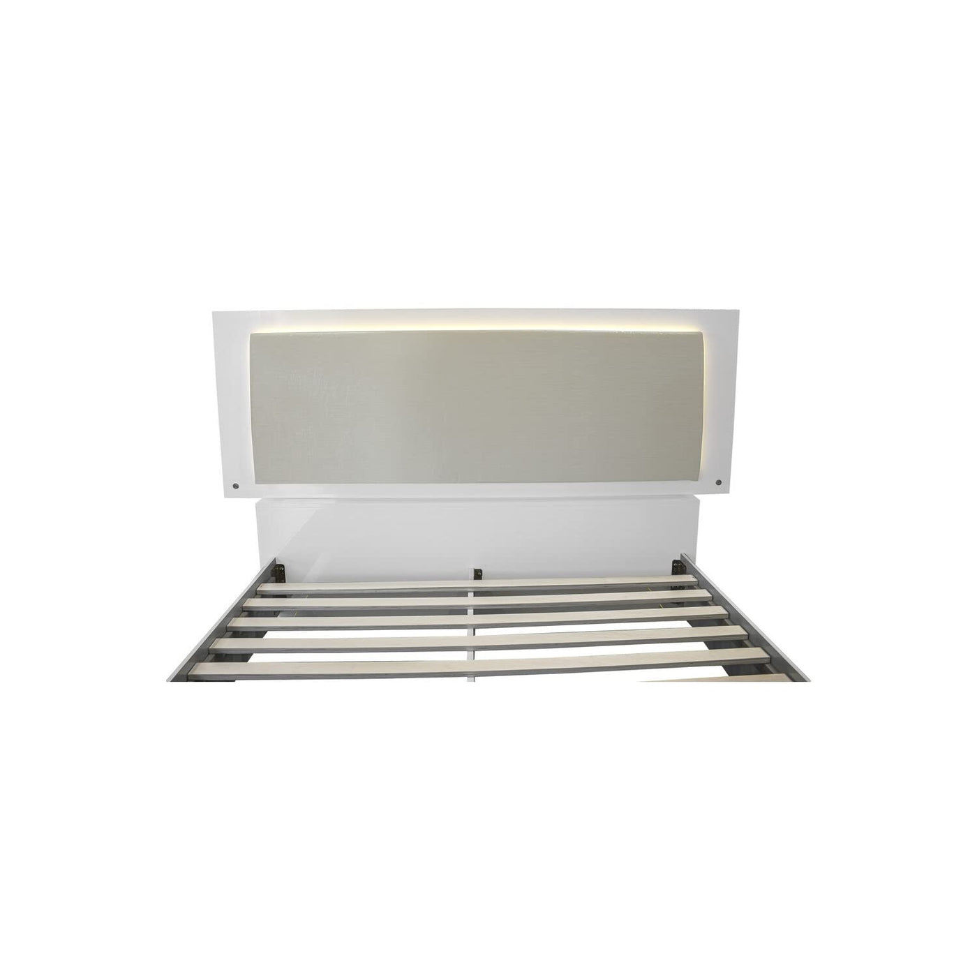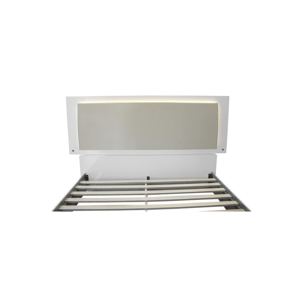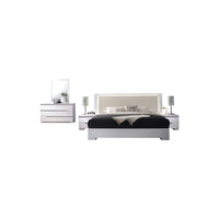 Crafted With Modern Touches And Covered In High Gloss, This Special Edition Of The Athens Collection Will Add A More Graceful Look To Your Bedroom. This Trend Setting Bedroom Set Offers A White Finish, Made Of Poplar Wood, Engineered Wood, Lacquer And Covered In High Gloss. All Drawers Comes With Metal Side Rails With Enough Drawers To Put Your Personal Belongings. The Bed Comes With Wooden Slats, Therefore, A Foundation Or Box Spring Is Not Required. The Head Board Comes With Led Lighting And Is Upholstered In Leather Like In Beige Finish.Features:Finish: White, Beige (Head Board), Silver (Handles)Material: Poplar Wood, Engineered Wood, Lacquer, High Gloss And Leather Like5-Piece Set Includes One (1) Bed, One (1) Dresser, One (1) Mirror, And Two (2) Nightstandsassembly Is Requiredheadboard Has Led Lightingspecifications:Bed Dimensions: 86"L X 78"W X 48"H (14 Pcs Slat)Dresser Dimensions: 55"W X 18"D X 32"Hmirror Dimensions: 33.5"W X 1"D X 39"Hnightstand Dimensions: 24"W X 17"D X 20"Hweight Capacity: 500 Lbssurface Material: Poplar Wood, Engineered Wood, Lacquer, High Gloss, Leather Like