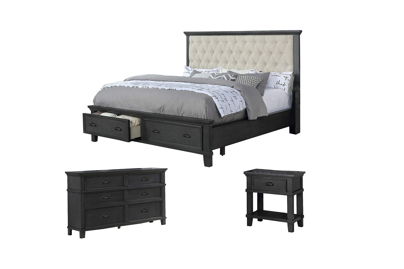 Descriptionrefine Your Bedroom With The Sandy Style Bedroom Set. This Bedroom Set Is A Perfect Match For Anyone Who Is Looking For The Combination Of Both The Traditional And Modern Look. Our Bed Frame Featuring Beautiful Gray Wood Color, While The Simple Moldings Add Subtle Detailing To The Woodwork That Is Visually Interesting And Appealing. The Headboard Of The Bed Is Upholstered With Beige Linen Fabric. This Bed Will Surely Be A Centerpiece Of Your Bedroom. Features: Material: Mdf, Solid Wood (Rubber Wood) Color: Gray Include: One (1) Bed, One (1) Dresser, And One (1) Nightstand. Size: Eastern King