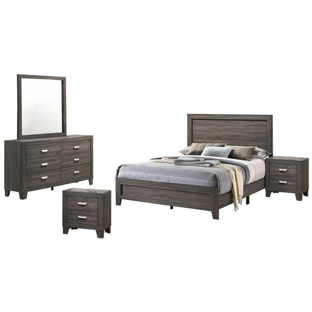 Best Quality Furniture 5Pc Twin Bed + Dresser + Mirror + 2 Nightstands, Gray