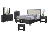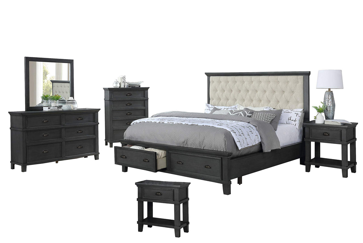 Refine Your Bedroom With The Sandy Style Bedroom Set. This Bedroom Set Is A Perfect Match For Anyone Who Is Looking For The Combination Of Both The Traditional And Modern Look. Our Bed Frame Featuring Beautiful Gray Wood Color, While The Simple Moldings Add Subtle Detailing To The Woodwork That Is Visually Interesting And Appealing. The Headboard Of The Bed Is Upholstered With Beige Linen Fabric. This Bed Will Surely Be A Centerpiece Of Your Bedroom. Features: Material: Mdf, Solid Wood (Rubber Wood) Color: Gray Include: One (1) Bed, One (1) Dresser, One (1) Mirror, One (1) Chest, And Two (2) Nightstands. Size: California King