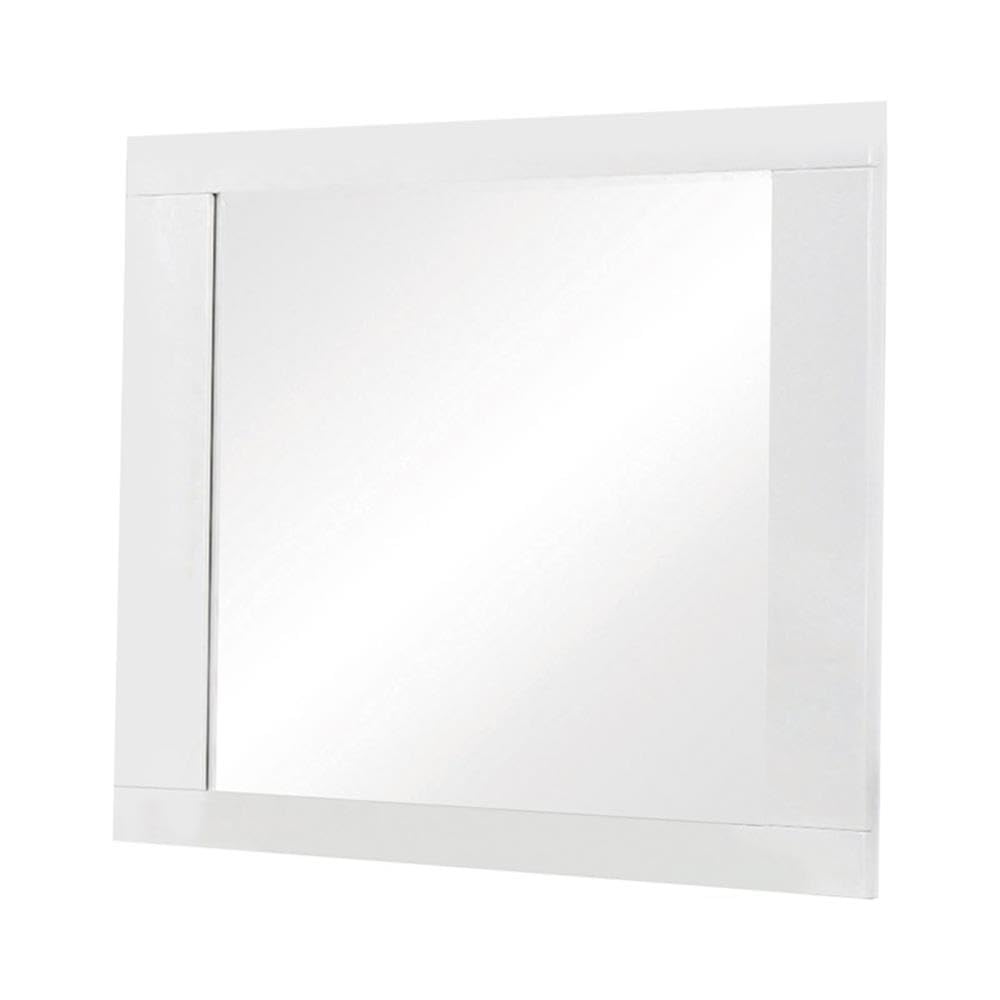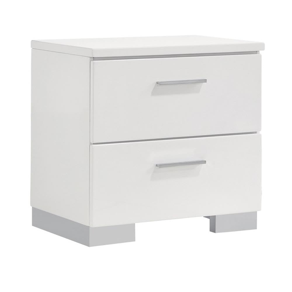 Bursting with incredible contemporary appeal, this glossy white bedroom set is an instant overhaul for your sleeping space. The sleek and glossy white finish is achieved with a polyurethane construction, found on the panel bed and headboard. Matching storage options complement the bed, including a two-drawer nightstand on chrome block style legs. The six-drawer dresser comes complete with a sleek matching mirror and felt-lined drawers for jewelry and dainty items. An optional five-drawer chest offers even more organization space for clothing and garments.FeaturesStellar contemporary design shows off clean lines and a cool, airy design aesthetic Designer white polyurethane finish polished to a superb high-gloss effect Bed features plank headboard and low profile footboard Polished chrome metal bar pull handles add minimalist appeal Spacious storage drawers boast felt-lining in top drawers Metal extension glides create stability and smooth operation Collection offers three stylish bed optionsDimensions:Eastern King Bed Assembled Product: 79.5 inches wide x 86.5 inches deep x 51.25 inches high Weight Capacity: 600 poundsNightstand Assembled Product: 23.25 inches wide x 15.25 inches deep x 22.75 inches highDresser Assembled Product: 63 inches wide x 17.75 inches deep x 34 inches highDresser Mirror Assembled Product: 46.5 inches wide x 1.25 inches deep x 37.25 inches highChest Assembled Product: 35 inches wide x 17.75 inches deep x 51 inches highAt Coaster, we are your premier source for exquisite furniture, offering diverse styles to enhance every aspect of your life. Our passion for excellence drives us to innovate, crafting budget-friendly furniture that complements your lifestyle. Explore our brands for endless design inspiration and make your living experience exceptional with thoughtfully designed, affordable pieces that inspire a life well-lived.