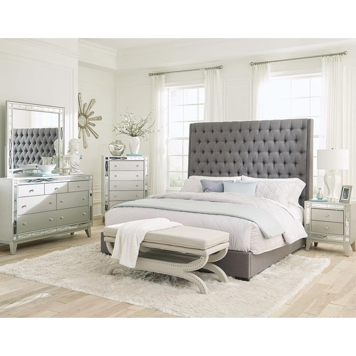 Coaster Home Furnishings Camille Modern Classic 5-Piece Bedroom Set Fabric Upholstered Eastern King Size Panel Bed Frame 71-Inch Headboard Metallic Mercury 300621Ke-S5