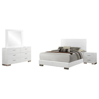 Coaster Home Furnishings Felicity Contemporary 4-Piece Bedroom Set Queen Size Panel Bed Frame 51-inch Headboard White High Gloss 203501Q-S4