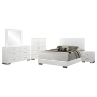 Coaster Home Furnishings Felicity Contemporary 5-Piece Bedroom Set Queen Size Panel Bed Frame 51-inch Headboard White High Gloss 203501Q-S5