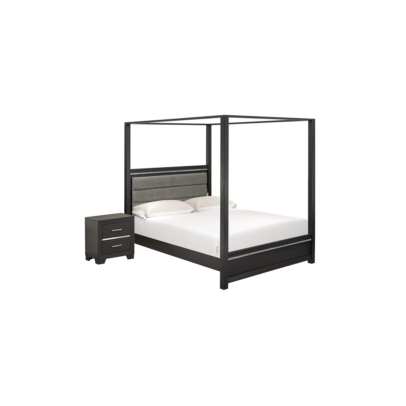 EAST WEST FURNITURE - DE20-Q1N000 - 2 PC BEDROOM SETOur bedroom set gives an elegant and sophisticated look to any room. We are offering a 2- Piece queen size bedroom set that consists of 1 queen size bed and 1 modern nightstand. Our queen bed frame features a headboard, footboard, and canopy frame. The comfortable bed headboard comes with built-in LED lights that have non-glaring eye adaptation brightness at night and become a focal point for everyone who comes to the bedroom. You will feel comfortable because of the canopy structure and Wood slats. Wood gives good stability for daily use. This wood bedroom set is suitable for any bedroom and to make a traditional design for any home. Our modern queen bed frame and wooden nightstand are very easy to assemble. It will just take a little time when you will assemble this set according to our instructions. You don't need to worry about its cleaning because our smooth surface products are very easy to clean. You can clean this bedroom set with the help of a dry cloth or furniture cleaners.BEDROOM SET FEATURES: Material: Engineered wood Color: Brushed Gray Dimensions of Queen Size Bed Frame: Length: 86.10; Width: 63.07; Height: 78.54 Bedroom Nightstand Dimensions: Length: 21.02; Width: 14.76; Height: 23.Included Package: 1 Modern Bed Frame and 1 Small Nightstand.NOTE: Mattress is not included with this Queen Full Size Bed.