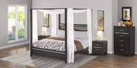 EAST WEST FURNITURE - DE20-Q2N00C - 4 PIECE BEDROOM SETOur 4-piece queen bedroom set is designed to add an elegant and sophisticated ambiance to any room. The set comprises a queen bed frame with a headboard, footboard, and canopy frame, along with 2 mid-century nightstands and a bedroom chest. The bed's headboard features built-in LED lights with non-glaring eye adaptation brightness, making it a focal point in the room. Additionally, its canopy structure and Wood slats ensure ample support and comfort. The wood material employed in the construction of this bedroom set offers durability and stability for daily use, and its traditional design complements various home decor. Assembling this modern queen bed frame, mid-century nightstands, and bedroom chest is a hassle-free process, thanks to the instructions provided. Furthermore, maintaining the set's pristine condition is easy, as the smooth surface can be effortlessly wiped clean with a dry cloth or furniture cleaners.BEDROOM SET FEATURES: Material: Engineered wood Color: Brushed Gray Dimensions of Queen Bed Frames: Length: 86.10; Width: 63.07; Height: 78.54. Night Stand Dimensions: Length: 21.02; Width: 14.76; Height: 23. The Dimensions of the Wood Chest: Length: 31.02; Width: 14.76; Height: 45.35.Included Package: 1 Queen Bed Frames, 2 Mid Century Nightstands and 1 Wood Chest.NOTE: Mattress is not included with this Queen Bed.