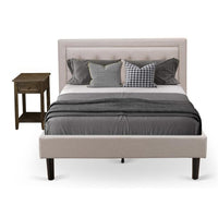 EAST WEST FURNITURE - FN08F-1VL07 - 2-PC PLATFORM FULL SIZE BED SETTransform your bedroom with the addition of this exceptional upholstered bedroom set, which brings a stunning allure to any sleeping space. It's time to give your master bedroom a remarkable style upgrade by incorporating this splendid upholstered bed. Our 2-piece bedroom set includes a full-size bed with a headboard and a Distressed Jacobean nightstand, ensuring a complete and harmonious arrangement. The Mist Beige linen fabric platform of the bed enhances the elegance of your bedroom to a luxurious level. Experience utmost comfort while sitting on this platform bed, as its plywood slats provide ample support. The sturdy equidistant slats not only reinforce durability but also prolong its lifespan. Rest assured, everything you need for assembly is thoughtfully packed, eliminating the requirement for additional tools. Gather your friends or family, and in no time, effortlessly assemble the modern bed, allowing you to revel in the joy of creativity and enjoy the newfound happiness it brings.WOODEN SET FOR BEDROOM FEATURES Material: Engineer Wood Wood Bed Frame Fabric Color: Mist Beige Full Size Bed Frame Legs Color: Black Mid Century Nightstand Color: Distressed Jacobean Dimensions of Wood Bed Frame: Length: 84; Width: 59; Height: 41.30. Modern Nightstand dimensions are: Length: 22; Width: 15.7; Height: 28.Package Includes 1 Full Bed and 1 Bedroom Nightstand.Note: Platform Full Size Bed, Headboard, Footboard, and Wooden slats are offered. The mattress won't be included in this Bedroom Set.