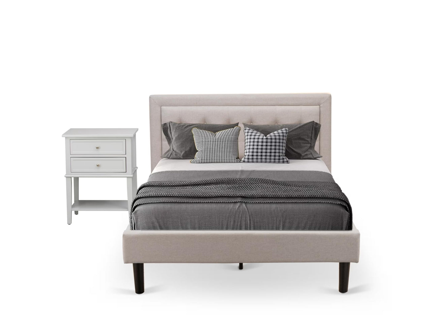 East West Furniture FN08F-1VL14 2-Pc Platform Bedroom Set with 1 Full Size Bed Frame and a Night Stand - Reliable and Durable Manufacturing - Mist Beige Linen Fabric
