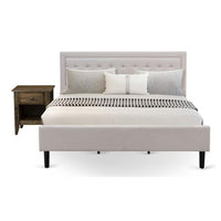 East West Furniture FN08K-1GA07 2-Piece Platform Wooden Set for Bedroom with 1 King Frame and 1 End Table - Reliable and Durable Construction - Mist Beige Linen Fabric