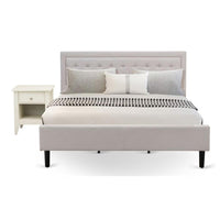 East West Furniture FN08K-1GA0C 2-Piece Platform King Bedroom Set with 1 Bed and Wire Brushed Butter Cream End Table - Reliable and Sturdy Manufacturing - Mist Beige Linen Fabric Bed