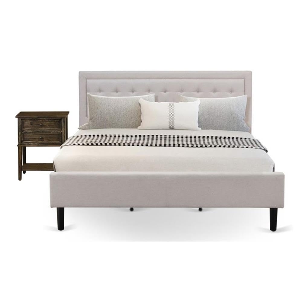 East West Furniture FN08K-1VL07 2-Piece Fannin Bedroom Set with 1 King Bed Frame and an End Table - Reliable and Sturdy Construction - Mist Beige Linen Fabric