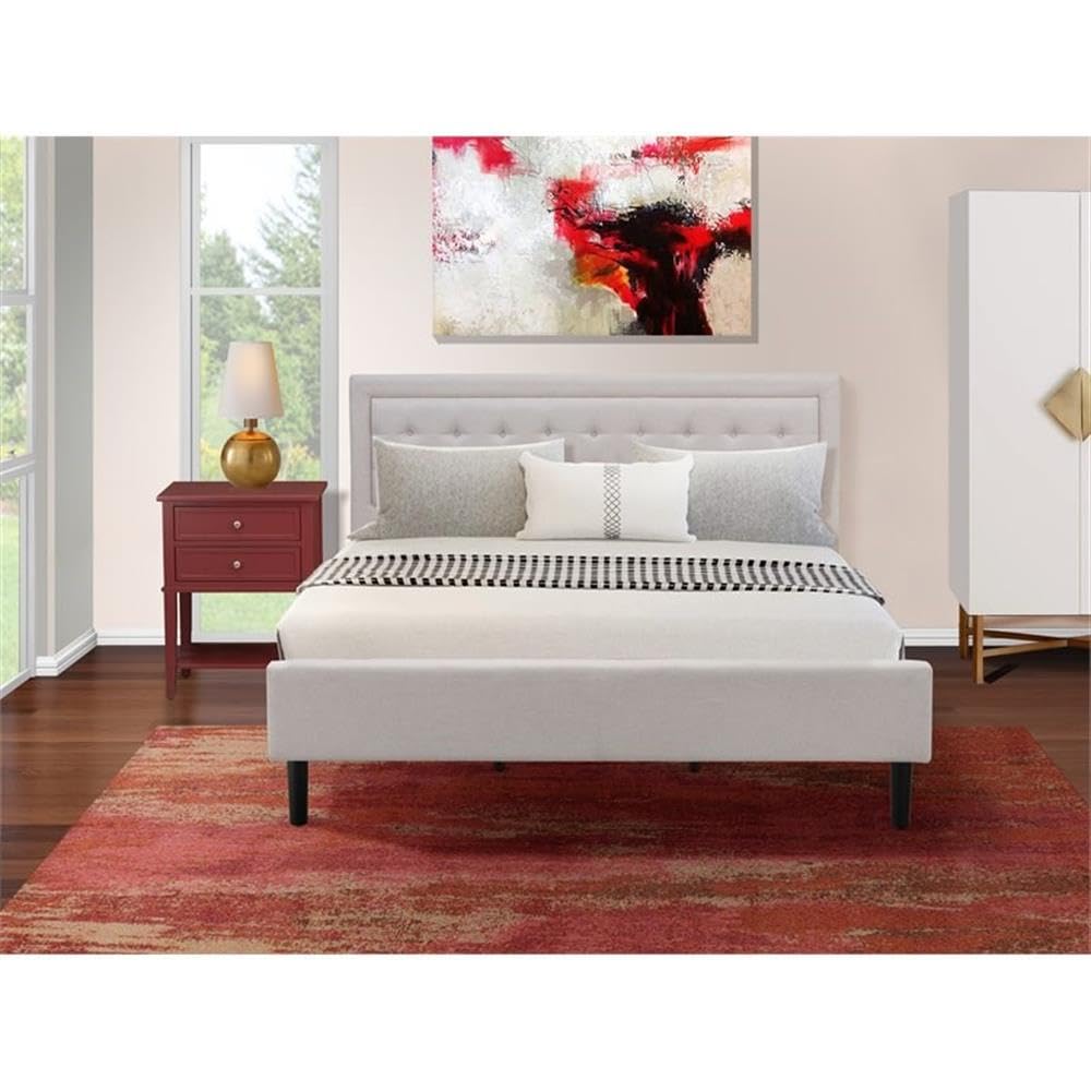 East West Furniture FN08K-1VL13 2-Piece Fannin Wooden Set for Bedroom with 1 Platform Bed and a Mid Century Modern Nightstand - Reliable and Durable Manufacturing - Mist Beige Linen Fabric