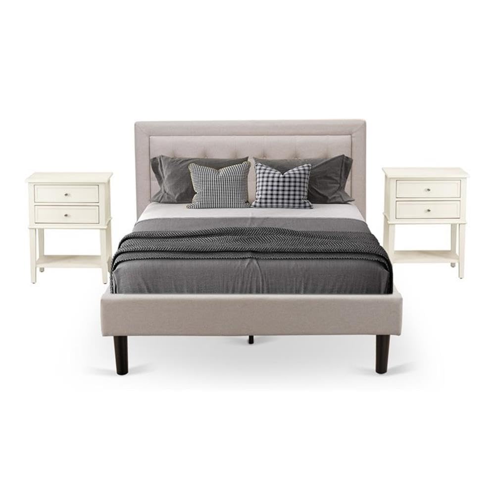 East West Furniture FN08K-2VL0C 3-Piece Platform Wooden Set for Bedroom with 1 King Size Bed and 2 Night Stands - Reliable and Durable Construction - Mist Beige Linen Fabric