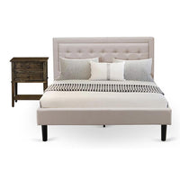 East West Furniture FN08Q-1VL07 2-Piece Fannin Bedroom Furniture Set with 1 Upholstered Bed and an End Table for Bedroom - Mist Beige Linen Fabric