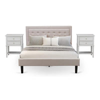 East West Furniture FN08Q-2VL14 3-Piece Fannin Bedroom Set with 1 Queen Bed and 2 Night Stands - Reliable and Sturdy Manufacturing - Mist Beige Linen Fabric