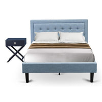 East West Furniture FN11F-1HA15 2-Piece Fannin Full Size Bedroom Set with 1 Wood Bed Frame and a Mid Century Modern Nightstand - Reliable and Durable Manufacturing - Denim Blue Linen Fabric