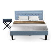 East West Furniture FN11Q-1HA15 2-Piece Platform Queen Bed Set Furniture with 1 Platform Bed and an End Table for Bedroom - Reliable and Durable Construction - Denim Blue Linen Fabric