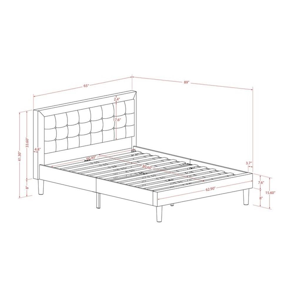 EAST WEST FURNITURE - FN11Q-2DE15 - 3-PIECE FANNIN QUEEN BEDROOM SETThis upholstered queen bedroom set is fantastic to offer a stunning appeal to any area. It is time to provide your bedroom with a major style upgrade with this upholstered platform bed. We are providing a 3 piece wooden set for bedroom that contains 1 modern bed with a headboard and 2 eye-catching bedroom nightstands. This Denim Blue linen fabric fannin wood queen bed frame enhances the appeal of any bedroom to an opulent level. The night stands have two USB ports and 02 outlets so that you can charge up to 02 mobile devices at the same time or plug in your computer for the ultimate technical convenience. Our unique creation queen bedroom set will surely feel comfortable when sitting on this wood queen bed frame and its plywood slats are good to offer ample support as well as the sturdy equidistant slats enhance durability and increase the life. Everything that you need for assembly is efficiently packaged no further equipment is required for this bedroom furniture set.BED SET FEATURES Material: Engineer Wood Mid Century Queen Size Frame Fabric Color: Denim Blue Queen Size Bed Frame Legs Color: Black End Tables Color: Navy Blue Dimensions of Queen Bedframe: Length: 89; Width: 65; Height: 41.30. End Tables for bedroom dimensions: Length: 19.5; Width: 15.7; Height: 24.Package Includes 1 Queen Frame and 2 End Tables.Note: Fannin wingback bed frame, Headboard, Footboard, and wood slats are provided. The mattress will not be included in this bedroom set.