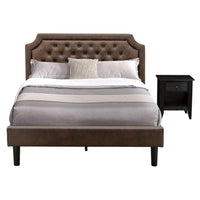 EAST WEST FURNITURE - GB25Q-1GA06 - 2-PC GRANBURY BEDROOM SETThe stunning faux leather cushioned padding queen frame will make any room luxurious and comfortable to sleep in. We are offering a 2 pc bedroom furniture set which contains 1 wood bed frame with a headboard as well as 1 appealing small end table. This modern bed is suitable for classic bedrooms and has a unique twist to any modern setting. Our queen bed set furniture has an end table with traditional styling. Durable wooden slats allow better support and less sagging for both inner-spring and foam mattresses. Our bedroom set is simple to clean along with a damped cloth because of its smooth finish. This queen wood bed frame can be easily assembled with the provided step-by-step assembly instruction and equipment pack.WOODEN SET FOR BEDROOM FEATURES Frame Material: Engineered Wood Frame Color: Black Upholstered Material: Faux Leather Faux Leather Color: Dark Brown Modern Nightstand Color: Wirebrushed Black Dimensions of queen bed: Length: 89; Width: 65; Height: 47. End Tables Dimensions: Length: 21; Width: 18; Height: 24.Package Includes 1 Wood Queen Bed Frame and 1 Wood Nightstand.Note: Queen Size Bed, Headboard, and hardwood slats are included. The mattress is not included in this Queen Bed Set Furniture.