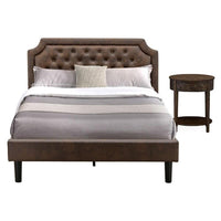 EAST WEST FURNITURE - GB25Q-1HI07 - 2-PC PLATFORM QUEEN BED SET FURNITUREOur attractive faux leather cushioned padding Queen Size Wooden Bed Frame will make any room luxurious and relaxed to rest in. We are offering a 2 pc bed set that contains 1 queen size bed with a headboard as well as 1 appealing night stands for bedrooms. This upholstered bed is great for classic bed rooms and a distinctive twist to any contemporary setting. Our bed set has a mid century modern nightstand with a classic appearance. Durable solid wood slats allow better support and less sagging for both inner-spring and foam mattresses. Our wooden set for bedroom is simple to clean along with a damped fabric because of its smooth finish. This wood queen bed frame can be simply assembled with the provided step-by-step assembly instruction and components pack.BEDROOM SET FEATURES Material: Engineered Wood Queen Size Bed faux leather headboard color: Dark Brown Modern Bed Legs Color: Black Modern Nightstand Color: Distressed Jacobean Dimensions of queen frame: Length: 89; Width: 65; Height: 47. Wood Nightstand Dimensions: Length: 23.7; Width: 20; Height: 28.Package Includes 1 Platform Bed Frame and 1 Small End Table.Note: Queen Bed Frame, Headboard, and solid wood slats are included. The mattress will not be included in this Bedroom Set.