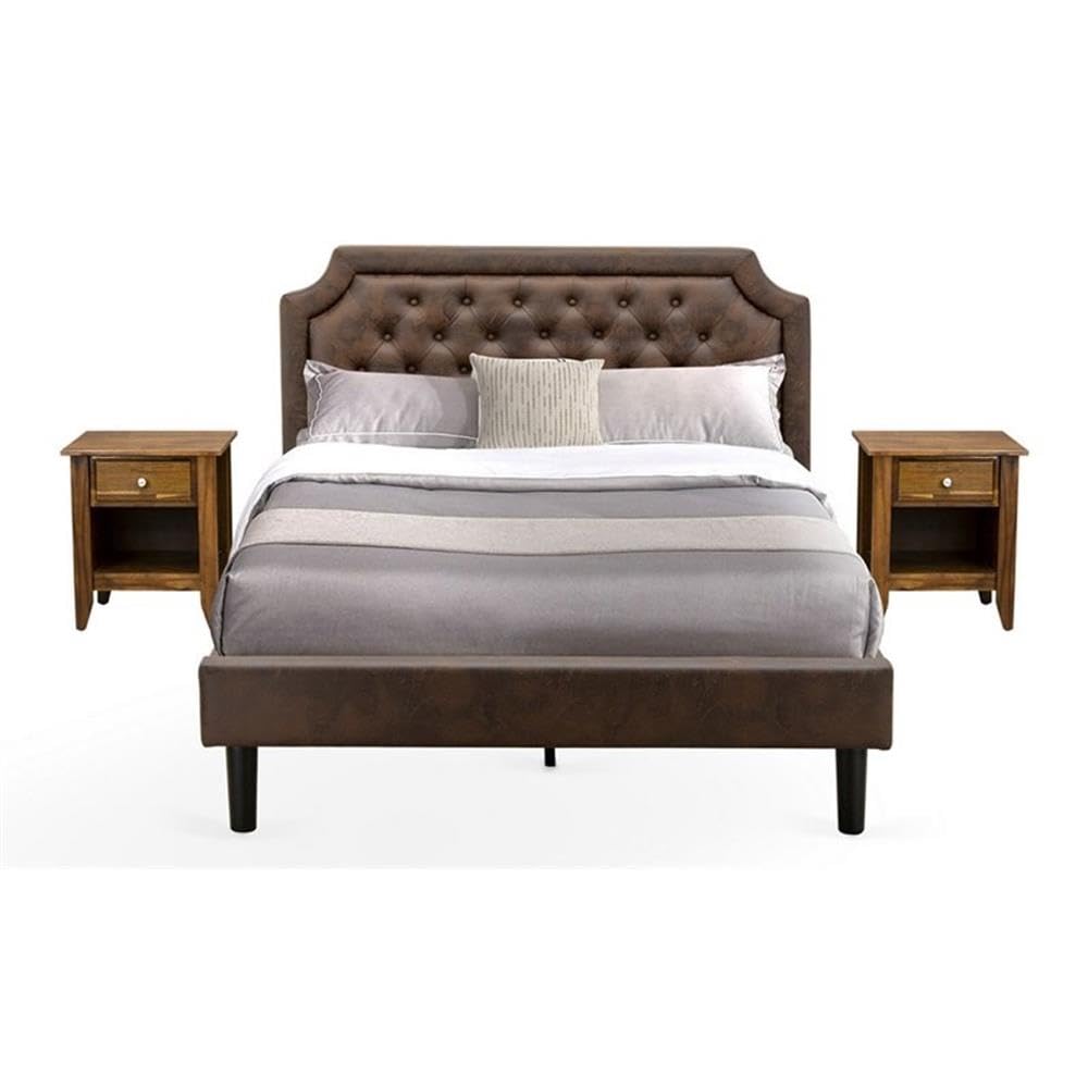 East West Furniture GB25Q-2GA08 3-Piece Platform Bed Set with Button Tufted Queen Size Bed and 2 Antique Walnut Night Stands - Dark Brown faux Leather with Black Texture and Black Legs