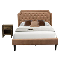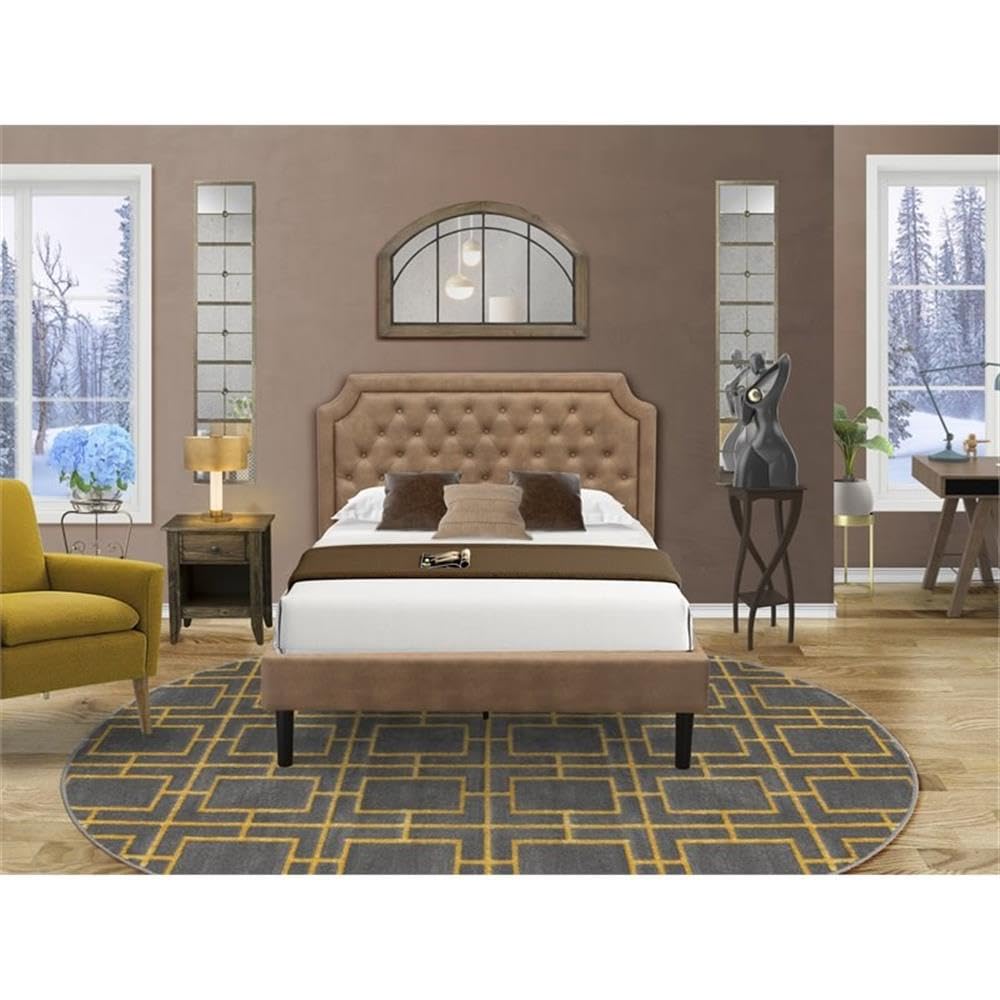 EAST WEST FURNITURE - GB28F-1GA07 - 2-PC PLATFORM FULL BED SETOur gorgeous faux leather cushioned padding full bed can make any room lavish and relaxed to rest in. We are offering a 2 pc bedroom set that contains 1 full size bed with a headboard and an attractive small end table. This platform bed is perfect for conventional bedrooms and a distinctive twist to any contemporary setting. Our wooden set for bedroom has 1 small end table with traditional styling. Sturdy solid wood slats offer better support and fewer sagging for both inner-spring and foam mattresses. Our full bed set is easy to clean with a damped fabric because of its smooth finish. These full size beds can be simply assembled with the provided step-by-step assembly instruction and equipment pack.FULL BEDROOM SET FEATURES Material: Engineered Wood Bed Headboard color: Brown Modern Bed Legs Color: Black Bedroom Nightstand Color: Distressed Jacobean Dimensions of Full Size Beds: Length: 84; Width: 59; Height: 47. End Table Dimensions: Length: 21; Width: 18; Height: 24.Package Includes 1 Full Size Bed and 1 Night Stand.Note: Mid Century Bed, Headboard, and wooden slats are included. The bed mattress is not included in this full size bedroom set.