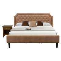 East West Furniture GB28K-1GA08 2-Piece Platform King Size Bedroom Set with Button Tufted King Frame and 1 Antique Walnut Night Stand - Brown faux Leather with Brown Texture and Black Legs