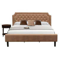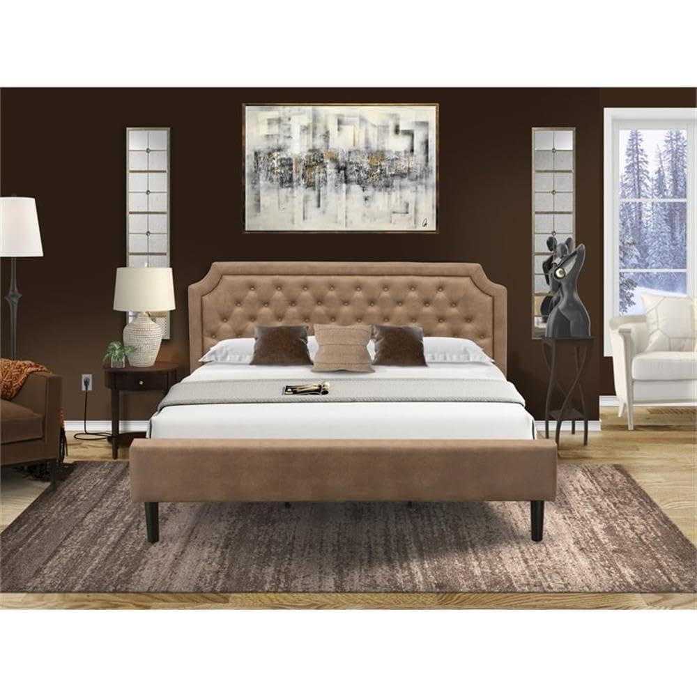 EAST WEST FURNITURE - GB28K-1HI0M - 2-PC GRANBURY WOODEN SET FOR BEDROOMOur 2 pc king bedroom set includes a stylish headboard and an attractive end table, adding a touch of elegance to your bedroom. Our king-sized bed frame showcases a rich brown faux leather upholstery, complete with a textured surface, while our skilled carpenters have meticulously finished its legs in black. The mid-century modern nightstand, adorned with an exquisite Antique Mahogany finish, adds a touch of elegance to the set. Crafted with utmost precision, this set is specifically designed to leave a lasting impression on anyone stepping into your bedroom. Moreover, its versatile color combination effortlessly complements any bedroom decor. Transform any room into a lavish and relaxing space for rest. This modern bed seamlessly blends into both traditional and contemporary settings, offering a unique twist to any decor. Enhancing the classic ambiance, our bed set features a bedroom nightstand with a timeless design. The sturdy wood slats provide excellent support, preventing any sagging for both inner-spring and foam mattresses. Cleaning this king size bed set is a breeze, thanks to its smooth finish that allows easy wiping with a damp cloth. Assembly is a hassle-free task, as the provided step-by-step instructions and hardware pack ensure a quick setup of this king size frame.BED SET FEATURES Material: Engineered Wood King Size Bed Headboard color: Brown King Size Bed Frame Legs Color: Black Bedroom Nightstand Color: Antique Mahogany Dimensions of king size bed: Length: 89; Width: 81; Height: 47. End Table Dimensions: Length: 23.7; Width: 23.7; Height: 28.Package Includes 1 Wood Bed Frame and 1 Mid Century Nightstand.Note: King Size Bed Frame, Headboard, and wooden slats are provided. The mattress is not included in this King Size Bedroom Set.