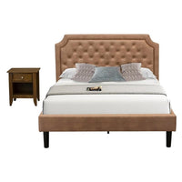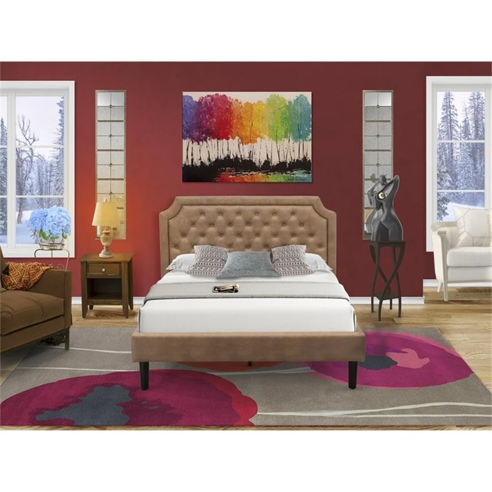 EAST WEST FURNITURE - GB28Q-1GA08 - 2-PC GRANBURY QUEEN BEDROOM SETOur 2-piece bedroom furniture set includes a queen size bed frame with a headboard and an appealing wood nightstand. This queen frame adds a touch of elegance to traditional bedrooms and brings a unique twist to contemporary settings. Our queen-sized bed showcases a luxurious brown faux leather upholstery with a textured appearance, expertly complemented by black legs meticulously crafted by our skilled carpenters. The accompanying end table boasts a stunning antique walnut finish. This bed set is designed to captivate anyone who steps into your home, effortlessly harmonizing with any bedroom decor, thanks to its impeccable color combination. The set also includes a small nightstand with a traditional design. With sturdy wooden slats, our bed frame provides excellent support, preventing sagging for both inner-spring and foam mattresses. Cleaning is a breeze with its smooth finish, requiring only a damp cloth. Assembling this button tufted queen frame is a simple task, thanks to the step-by-step assembly instructions and included hardware pack.BED SET FEATURES Material: Engineered Wood Queen Size Frame color: Brown Queen Wood Bed Frame Legs Color: Black Small Nightstand Color: Antique Walnut Dimensions of queen size bed: Length: 89; Width: 65; Height: 47. Night Stands Dimensions: Length: 21; Width: 18; Height: 24.Package Includes 1 Queen Frame and 1 Mid Century Modern Nightstand.Note: Wood Queen Bed Frame, Headboard, and solid wood slats are provided. The bed mattress will not be included in this Queen Bed Set Furniture.