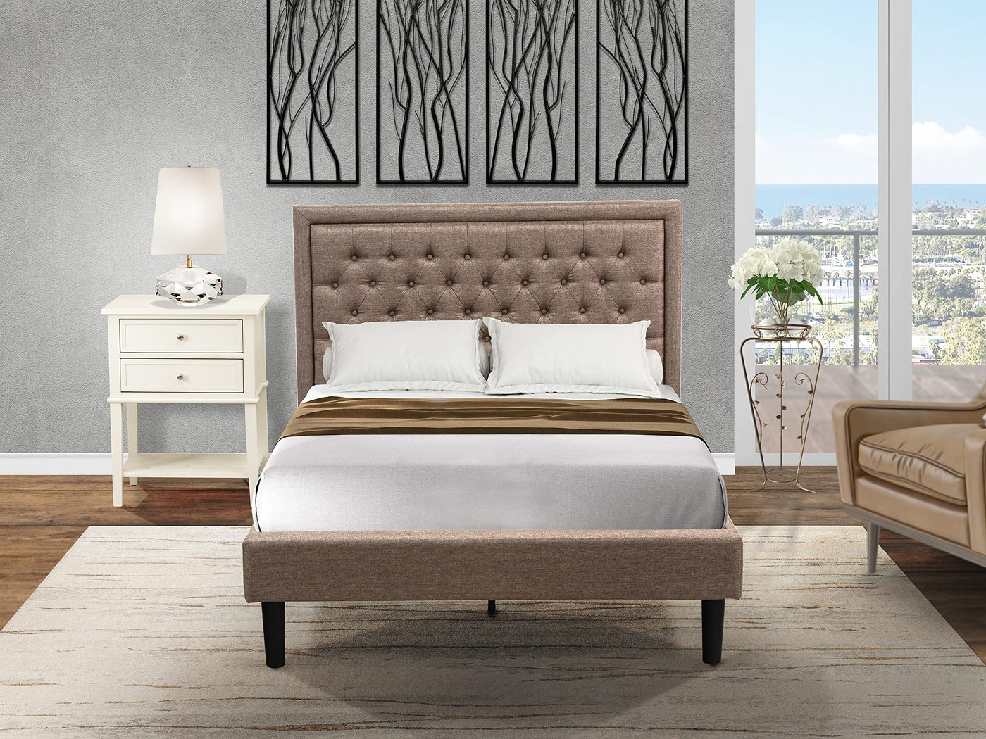 EAST WEST FURNITURE - KD16F-1VL0C - 2 PIECE BEDROOM SETThis attractive wooden bedroom set makes a gorgeous addition to any bedroom in your home. Our 2 Piece bed set consists of 1 platform bed frame and 1 night stand with 2 drawers. Our wood bedroom set will impress everyone that will come to your house because it fits with any type of decor. We have constructed this full bed frame and night stand for bedroom by using engineered wood to make strong support for you and your mattress. This versatile bed features a wood headboard crafted from robust wood that will surely be the focal point of your bedroom and a great place to lean on and relax, foam padding covered with Dark Khaki Linen Fabric. This wooden bedroom set is low maintenance furniture and it is a good choice for Budget-friendly. The step by step Assembly instructions for headboard, footboard, wooden slats and other accessories are all in the package, you will be able to do assemble these in a short time. Our Linen Fabric headboard is quite simple to clean and always gives a perfect appeal. Our product will add more elegance to your room and you will feel well.WOODEN BEDROOM SET FEATURES:Material: Engineered WoodBed Frame Color: Dark KhakiFull Bed Frame Legs Color: BlackNight Stand Top Color: Wire Brushed Butter CreamModern Nightstand Legs Color: Wire Brushed Butter CreamDimensions of Modern Bed Frame: Length: 83.6; Width: 59; Height: 47.Nightstand Dimensions: Length: 22; Width: 15.7; Height: 28.Include in this Package: 1 Full Size Platform Bed Frame and 1 NightstandNote: Mattress is not included with this Full Size Bed.