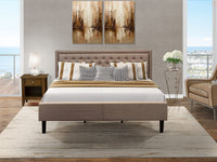 EAST WEST FURNITURE - KD16K-1GA08 - 2 PC WOODEN BEDROOM SETEnhance the beauty of any bedroom in your home with this exquisite bedroom set. Our 2 Piece king bedroom set includes a king size platform bed frame and a small nightstand with 1 drawer. The versatility of our king size bedroom set ensures it complements any type of decor, leaving a lasting impression on anyone who visits your house. Crafted with engineered wood, the king bed frame and mid-century nightstand offer robust support for you and your mattress. The bed features a modern wooden headboard, made from durable wood, serving as a captivating centerpiece for your bedroom and a comfortable spot to lean on and unwind. The headboard is adorned with foam padding covered in Dark Khaki Linen Fabric, adding a touch of elegance. This king bedroom set requires minimal maintenance and is an excellent choice for those on a budget. In the package, you'll find step-by-step assembly instructions for the headboard, footboard, wood slats, and other accessories, allowing you to effortlessly assemble them in no time. The Linen Fabric headboard is easy to clean and consistently maintains its appealing appearance. Experience the added elegance this product brings to your room, providing you with a sense of well-being.BED SET FEATURES: Material: Engineered Wood King Bed Color: Dark Khaki Wood Bed Frame Legs Color: Black Night Stand Top Color: Antique Walnut Night Stand For Bedroom Legs Color: Antique Walnut Dimensions of Wood Bed Frame: Length: 89; Width: 81; Height: 47. Wood Nightstand Dimensions: Length: 21; Width: 18; Height: 24.Include in this Package: 1 Wood Bed Frame and 1 NightstandNote: Mattress is not included with this King Size Platform Bed Frame.