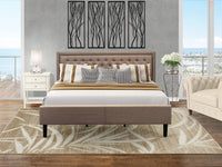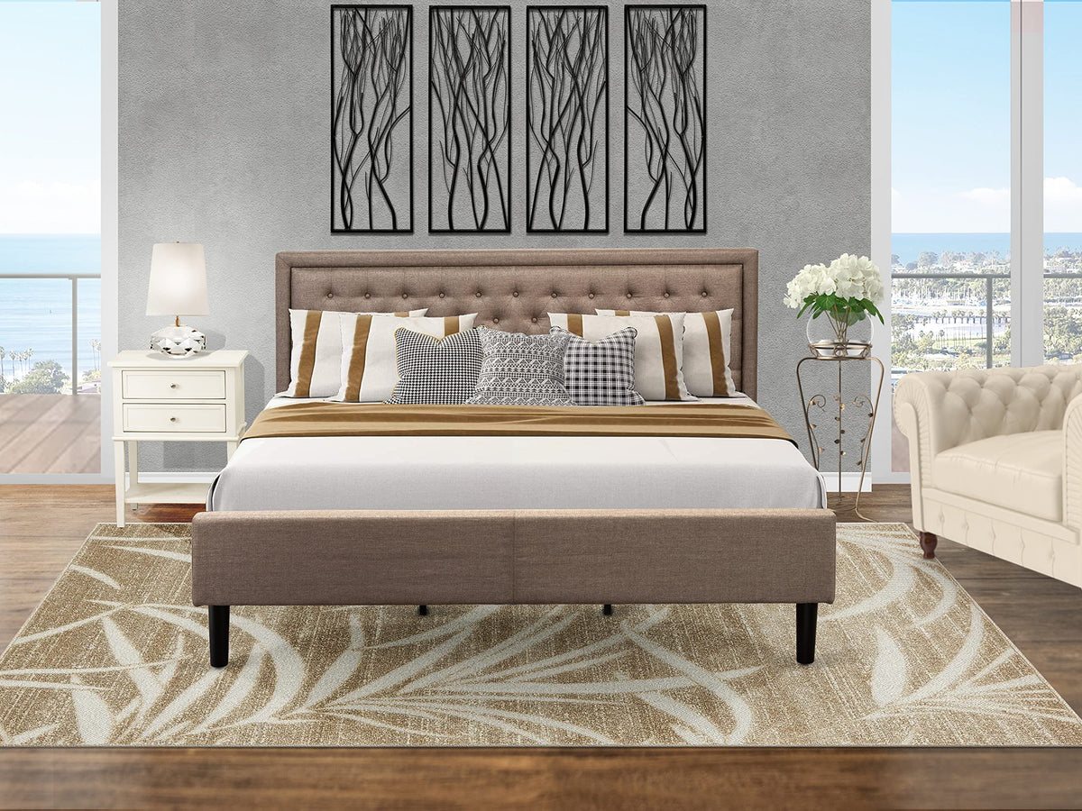 EAST WEST FURNITURE - KD16K-1VL0C - 2 PC KING SIZE BED SETEnhance the elegance of your bedroom with this exquisite king bedroom set that complements any home decor. The set includes a 1 king platform bed and a 1 mid-century modern nightstand featuring two drawers. Crafted from durable engineered wood, our wood bedroom set ensures robust support for both you and your mattress. The versatile bed showcases a captivating wooden headboard, serving as the focal point of your bedroom while providing a comfortable place to lean back and unwind. Its foam padding, covered with Dark Khaki Linen Fabric, adds a touch of sophistication. Not only is this bed set low maintenance, but it is also budget-friendly. Assembly instructions for the headboard, footboard, wood slats, and other accessories are included in the package, allowing for easy and quick assembly. The Linen Fabric headboard is easily cleaned and consistently offers a pleasing aesthetic. By incorporating our product into your room, you will enhance its beauty and create a sense of well-being.BEDROOM SET FEATURES: Material: Engineered Wood Wooden Bed Frame Color: Dark Khaki Platform Bed Frame Legs Color: Black Mid Century Nightstand Top Color: Wire Brushed Butter Cream Mid Century Modern Nightstand Legs Color: Wire Brushed Butter Cream Dimensions of King Size Bed: Length: 89; Width: 81; Height: 47. Wood Nightstand Dimensions: Length: 22; Width: 15.7; Height: 28.Include in this Package: 1 Wooden Bed Frame and 1 Wood NightstandNote: Mattress is not included with this Wooden Bed Frame.