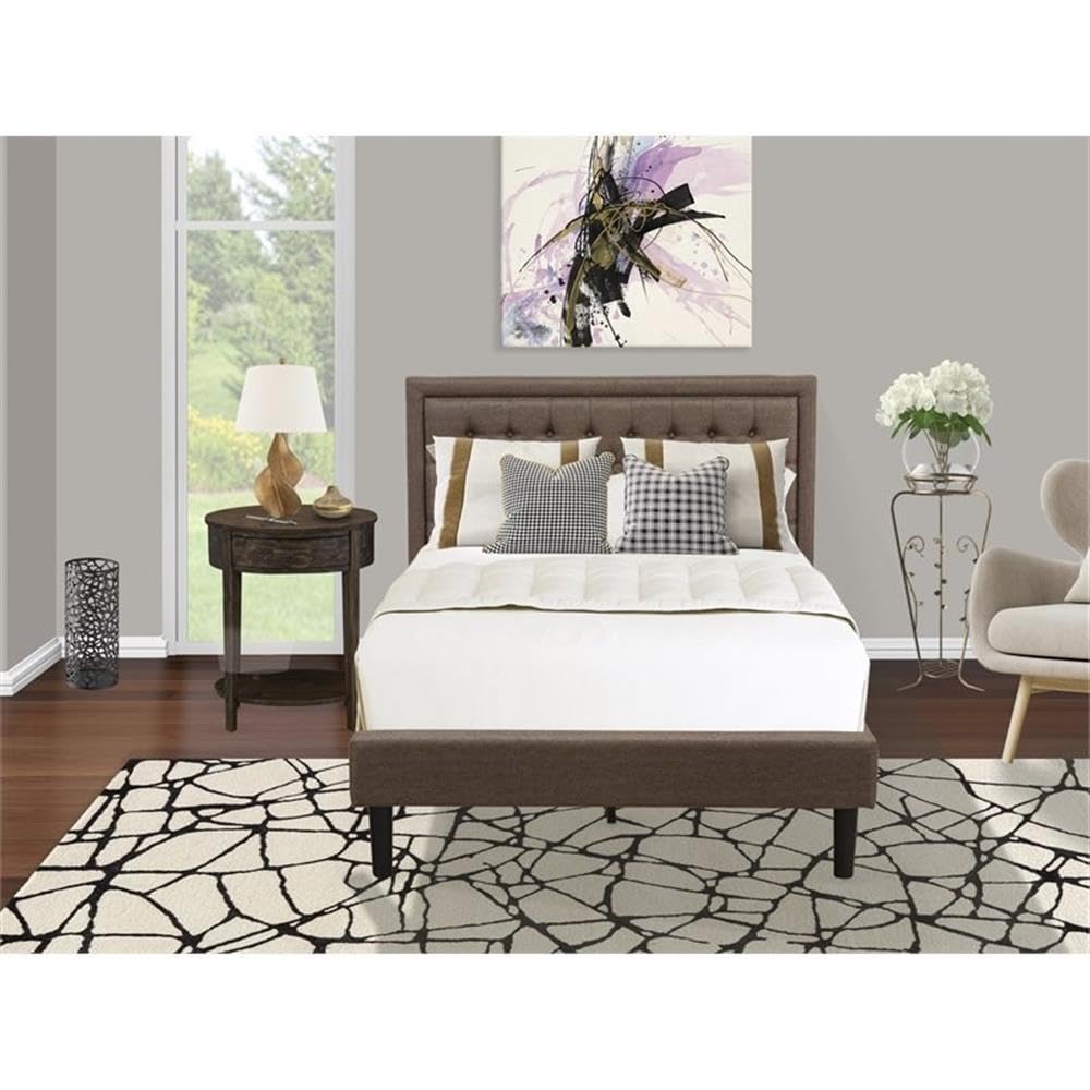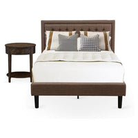 EAST WEST FURNITURE - KD18F-1HI07 - 2 PIECE BED SETIntroduce a touch of luxury to any bedroom in your home with this exquisite bed set. Our full 2 Piece bedroom set includes a sleek modern bed frame and a stylish nightstand featuring a convenient drawer. Crafted from high-quality engineered wood, our wooden bedroom set is designed to impress and seamlessly complement any decor style. The sturdy construction of the bed frame and nightstand ensures excellent support for both you and your mattress. The versatile bed boasts a robust wood headboard, which serves as the centerpiece of your bedroom and provides a comfortable spot to lean on and unwind. It is adorned with foam padding and covered in elegant Brown Linen Fabric. This low maintenance bedroom set is also budget-friendly, making it an excellent choice. The package includes easy-to-follow assembly instructions for the headboard, footboard, wood slats, and other accessories, allowing you to assemble them quickly. Cleaning the Linen Fabric headboard is a breeze, ensuring it maintains its appealing appearance. By adding our product to your room, you'll elevate its elegance and create a soothing environment that will leave you feeling truly content.PRODUCT FEATURES: Material: Engineered Wood Bed Color: Brown Full Size Bed Legs Color: Black Nightstand Color: Distressed Jacobean Dimensions of Full Size Platform Bed Frame: Length: 84; Width: 59; Height: 47. Night Stand Dimensions: Length: 23.7; Width: 23.7; Height: 28.Include in this Package: 1 Full Size Platform Bed Frame and 1 NightstandNote: Mattress is not included with this Modern Bed Frame.