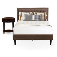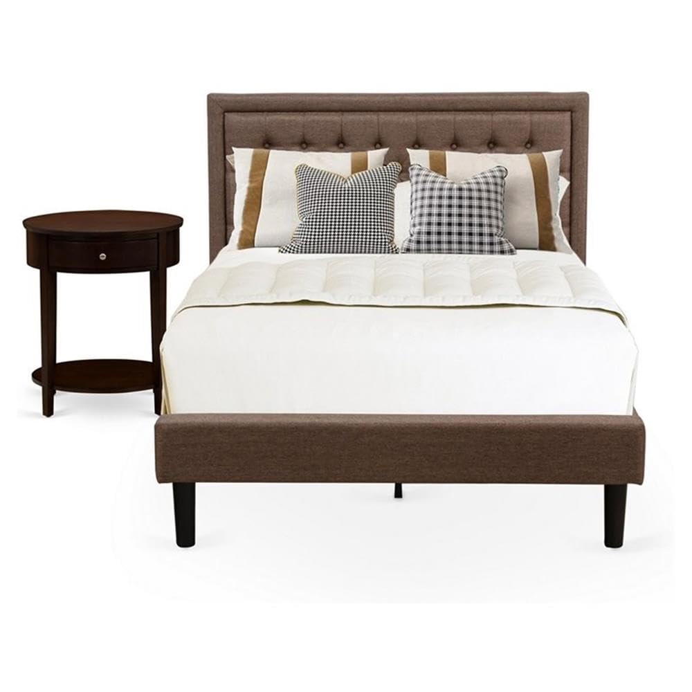EAST WEST FURNITURE - KD18F-1HI0M - 2 PC WOOD BEDROOM SETThis gorgeous wood bedroom set makes a beautiful addition to any bedroom in your home. Our 2 Piece wooden bedroom set contains 1 bed frame and 1 night stand for bedroom with 1 drawer. Our full bed set will impress everyone that will come to your house because it fits with any type of decor. We have constructed this modern bed frame and night stand for bedroom by using engineered wood to make strong support for you and your mattress. Our versatile bed features a wood headboard crafted from robust wood that will surely be the focal point of your bedroom and a great place to lean on and relax, foam padding covered with Brown Linen Fabric. This wood bedroom set is low maintenance furniture and it is a good choice for Budget-friendly. The step by step Assembly instructions for headboard, footboard, wood slats and other accessories are all in the package, you will be able to do assemble these in a short time. Our Linen Fabric headboard is quite simple to clean and always gives a great appeal. Our product will add more beauty to your room and you will feel well.FULL BED SET FEATURES: Material: Engineered Wood Platform Bed Frame Color: Brown Full Bed Legs Color: Black Night Stand Top Color: Antique Mahogany Nightstand Legs Color: Antique Mahogany Dimensions of Full Bed Frame: Length: 84; Width: 59; Height: 47. Night Stand for Bedrooms Dimensions: Length: 23.7; Width: 20; Height: 28.Include in this Package: 1 Full Bed and 1 Night StandNote: Mattress is not included with this Full Bed Frame.