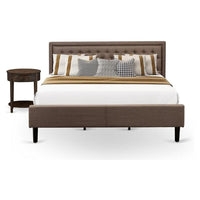 EAST WEST FURNITURE - KD18K-1HI07 - 2 PC KING SIZE BED SETEnhance the elegance of your bedroom with this exquisite bedroom set, a perfect addition to any home. This king-size bed set comprises of a wooden bed frame and a modern nightstand featuring a single drawer. It is designed to impress all your guests, effortlessly blending with any type of decor. The bed frame and nightstand are meticulously crafted using engineered wood, ensuring a sturdy foundation for both you and your mattress. The versatile bed showcases a robust wooden headboard that serves as a captivating centerpiece in your bedroom, providing a comfortable spot to lean on and unwind. The headboard is adorned with foam padding, upholstered in Brown Linen Fabric for a luxurious touch. This bedroom set offers low-maintenance furniture that is budget-friendly, making it an excellent choice. The package includes step-by-step assembly instructions for the headboard, footboard, wood slats, and other accessories, allowing for quick and hassle-free assembly. The Linen Fabric headboard is easily cleaned and perpetually maintains its allure. By adding our product to your room, you will not only enhance its beauty but also experience a heightened sense of well-being.KING BEDROOM SET FEATURES: Material: Engineered Wood King Size Bed Color: Brown Wood Bed Frame Legs Color: Black Night Stands Top Color: Distressed Jacobean Small Nightstand Legs Color: Distressed Jacobean Dimensions of Platform Bed: Length: 89; Width: 81; Height: 47. Mid Century Modern Nightstand Dimensions: Length: 23.7; Width: 23.7; Height: 28.Include in this Package: 1 King Platform Bed Frame and 1 Wood NightstandNote: Mattress is not included with this King Size Bed.