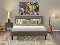 EAST WEST FURNITURE - KD18K-1VL07 - 2 PC WOODEN BEDROOM SETElevate the elegance of your bedroom with this opulent king-size bedroom set, which serves as a remarkable addition to any home. The 2 Piece king bed set includes a sturdy wooden bed frame and a compact nightstand with 2 drawers. This bed set is designed to impress guests with its ability to seamlessly blend with various decor styles. Engineered wood has been utilized in constructing the platform bed and wood nightstand, ensuring robust support for both you and your mattress. The versatile bed showcases a strong wooden headboard that serves as the centerpiece of your bedroom, providing a comfortable place to lean back and unwind. It is adorned with foam padding and covered in Brown Linen Fabric, adding a touch of sophistication. This bedroom set is not only aesthetically pleasing but also low maintenance, making it a cost-effective choice. The package includes step-by-step assembly instructions for the headboard, footboard, wood slats, and other accessories, allowing for quick and hassle-free setup. The Linen Fabric headboard is easy to clean and perpetually exudes an impeccable charm. With our product, your room will be enhanced, creating a sense of tranquility and beauty.KING BEDROOM SET FEATURES: Material: Engineered Wood Platform Bed Color: Brown Bed Frame Legs Color: Black Night Stands Top Color: Distressed Jacobean Nightstand Legs Color: Distressed Jacobean Dimensions of King Size Platform Bed Frame: Length: 89; Width: 81; Height: 47. Mid Century Modern Nightstand Dimensions: Length: 22; Width: 15.7; Height: 28.Include in this Package: 1 King Platform Bed Frame and 1 NightstandNote: Mattress is not included with this King Size Platform Bed Frame.