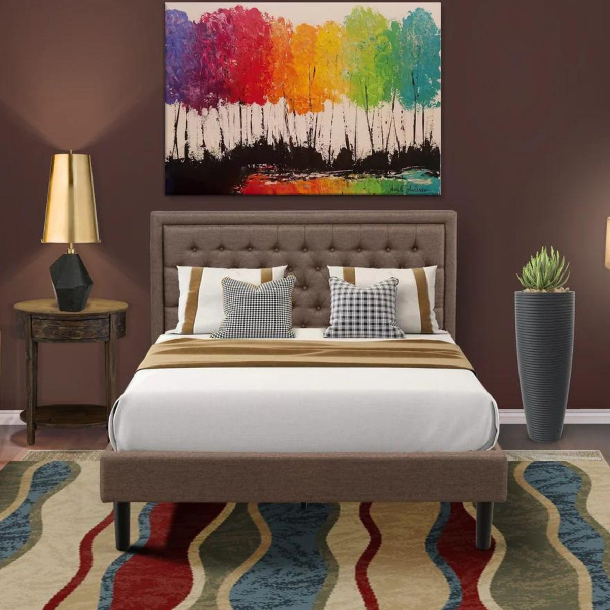 EAST WEST FURNITURE - KD18Q-1HI07 - 2 PC QUEEN SIZE BEDROOM SETEnhance the allure of any bedroom in your home with this exquisite, high-end queen bed set. Our 2 Piece bedroom set features a queen bed frame and a wooden nightstand with a single drawer, providing a complete package. Designed to seamlessly blend with any style of decor, our queen bed set is guaranteed to impress your guests. Engineered with durable materials, including sturdy engineered wood, this queen platform bed and wood nightstand offer exceptional support for both you and your mattress. The bed boasts a versatile design, featuring a contemporary wooden headboard crafted from robust wood, serving as the focal point of your bedroom and a comfortable spot to lean on and unwind. Adorned with foam padding and covered in elegant Brown Linen Fabric, our queen bedroom set exudes both style and comfort. With its low maintenance nature and budget-friendly qualities, this furniture collection is a fantastic choice. Inside the package, you'll find step-by-step assembly instructions for the headboard, footboard, wooden slats, and other accessories, ensuring a quick and hassle-free setup. Cleaning the Linen Fabric headboard is a breeze, and it consistently maintains its appealing appearance. Elevate the elegance of your room with our product and experience true satisfaction.BEDROOM SET FEATURES: Material: Engineered Wood Modern Bed Frame Color: Brown Platform Bed Legs Color: Black Night Stands For Bedrooms Top Color: Distressed Jacobean Modern Nightstand Legs Color: Distressed Jacobean Dimensions of Queen Size Bed Frame: Length: 89; Width: 65; Height: 47. Wood Night Stand Dimensions: Length: 23.7; Width: 23.7; Height: 28.Include in this Package: 1 Platform Bed and 1 Bedroom NightstandNote: Mattress is not included with this Queen Platform Bed.