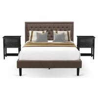 East West Furniture KD18Q-2VL06 3 Piece Bed Set Queen - 1 Queen Size Bed Brown Linen Fabric Padded and Button Tufted Headboard with 2 Mid Century Nightstand - Wire Brushed Black Finish Nightstand