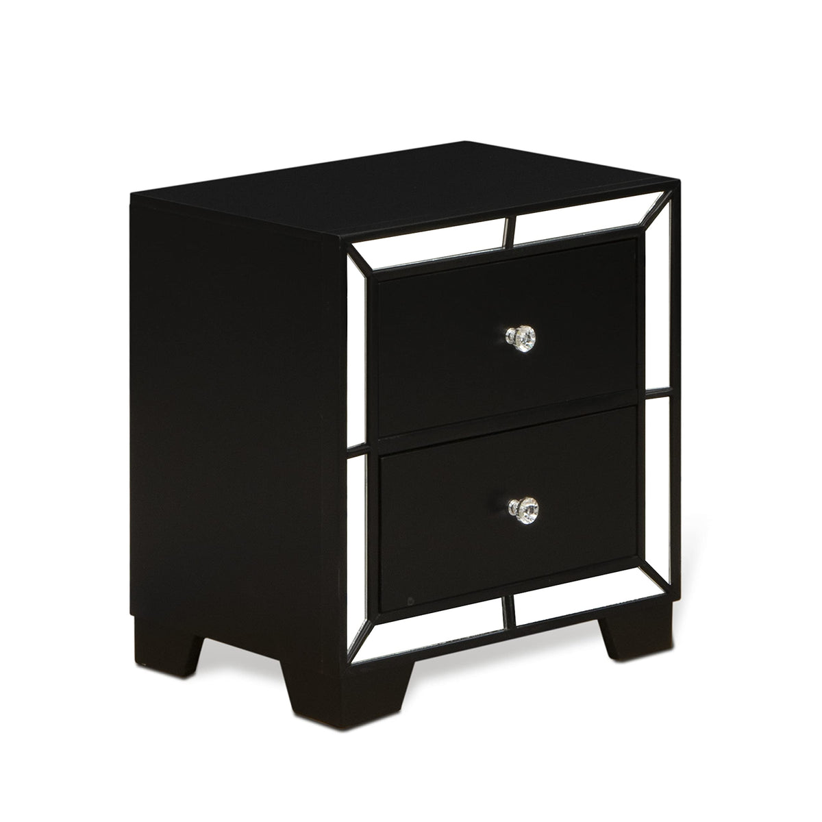 EAST WEST FURNITURE - NE11-Q1N000 - 2 PIECE BEDROOM SETWe present a comprehensive 2-piece bedroom set, comprising of a beautifully upholstered bed and a convenient nightstand. Transform your bedroom into a luxurious haven with our exquisite Black luxury faux leather upholstery and plush queen headboard, ensuring a whole new level of comfort during your sleep. Crafted from engineered wood, this queen-size bed offers robust and dense support for you and your loved ones. The frame of this bed showcases an elegant mid-century design, constructed with durable wood that has been reinforced with side rails and center legs to ensure long-lasting stability. Experience an enhanced bedroom aesthetic with this modern bed that effortlessly elevates its allure. Our platform bed headboard boasts an LED light feature with various modes, allowing you to adjust the lighting according to your preferences, such as a soothing night light, an energy-efficient option, or a bright reading light. Additionally, the under-bed frame clearance provides valuable extra storage space, perfect for organizing small items. Cleaning our modern bedroom set is a breeze, as its smooth finish can be easily wiped down with a damp cloth. Assembly is a hassle-free process, facilitated by the step-by-step instructions and included components. No additional tools are required for setup.WOODEN SET FOR BEDROOM FEATURES: Material: Engineered Wood Bed faux leather headboard color: Black Queen Bed Frame Legs Color: Black End Table Color: Black Dimensions of Queen Size Bed Frame: Length: 84.72; Width: 63; Height: 54.9. Wood Nightstand Dimensions are: Length: 21; Width: 15.50; Height: 23.Package Includes: 1 Upholstered Bed and Wood Nightstand.Note: Platform Bed Frame, Headboard, and hardwood slats are included. The bed mattress is not included in this queen size bed set.