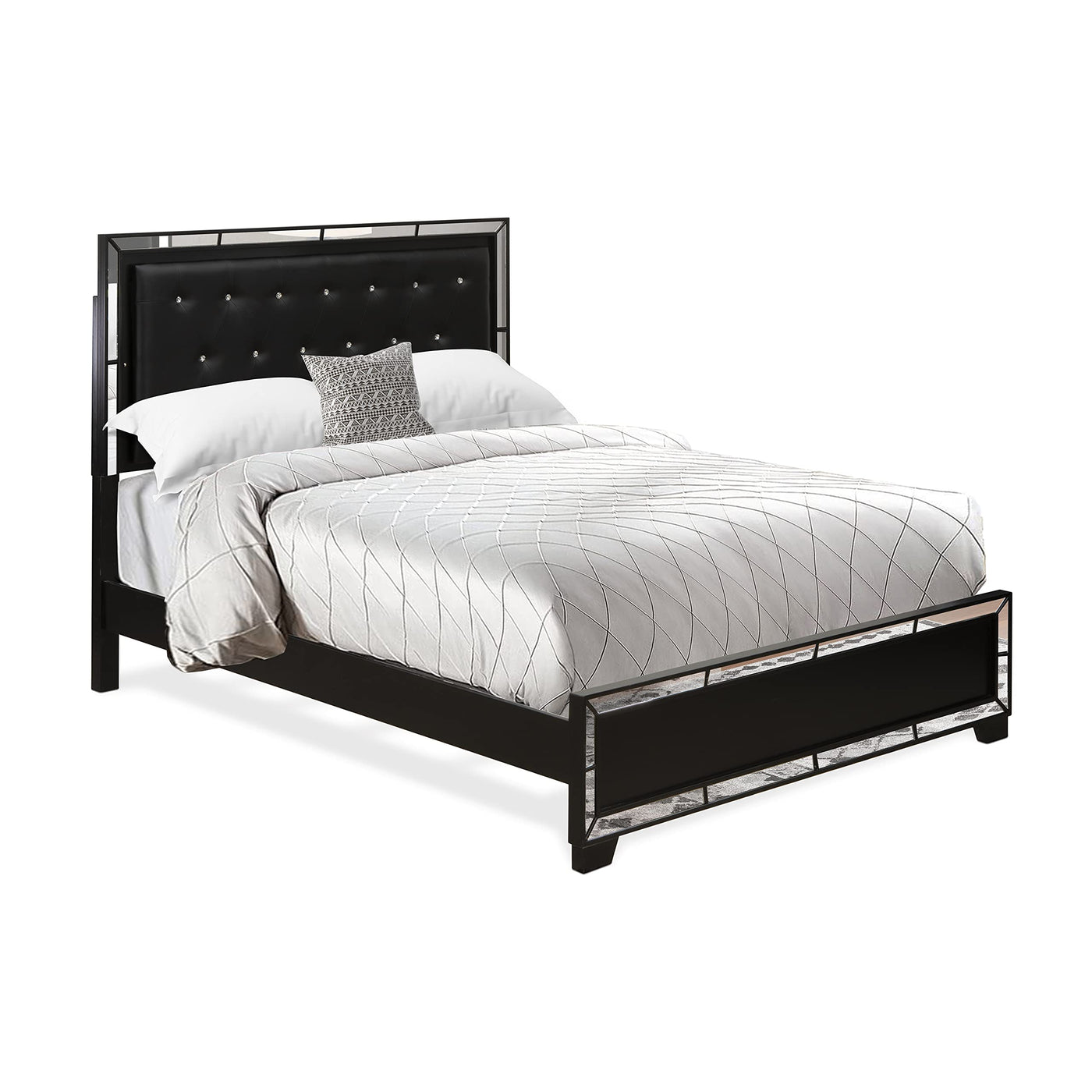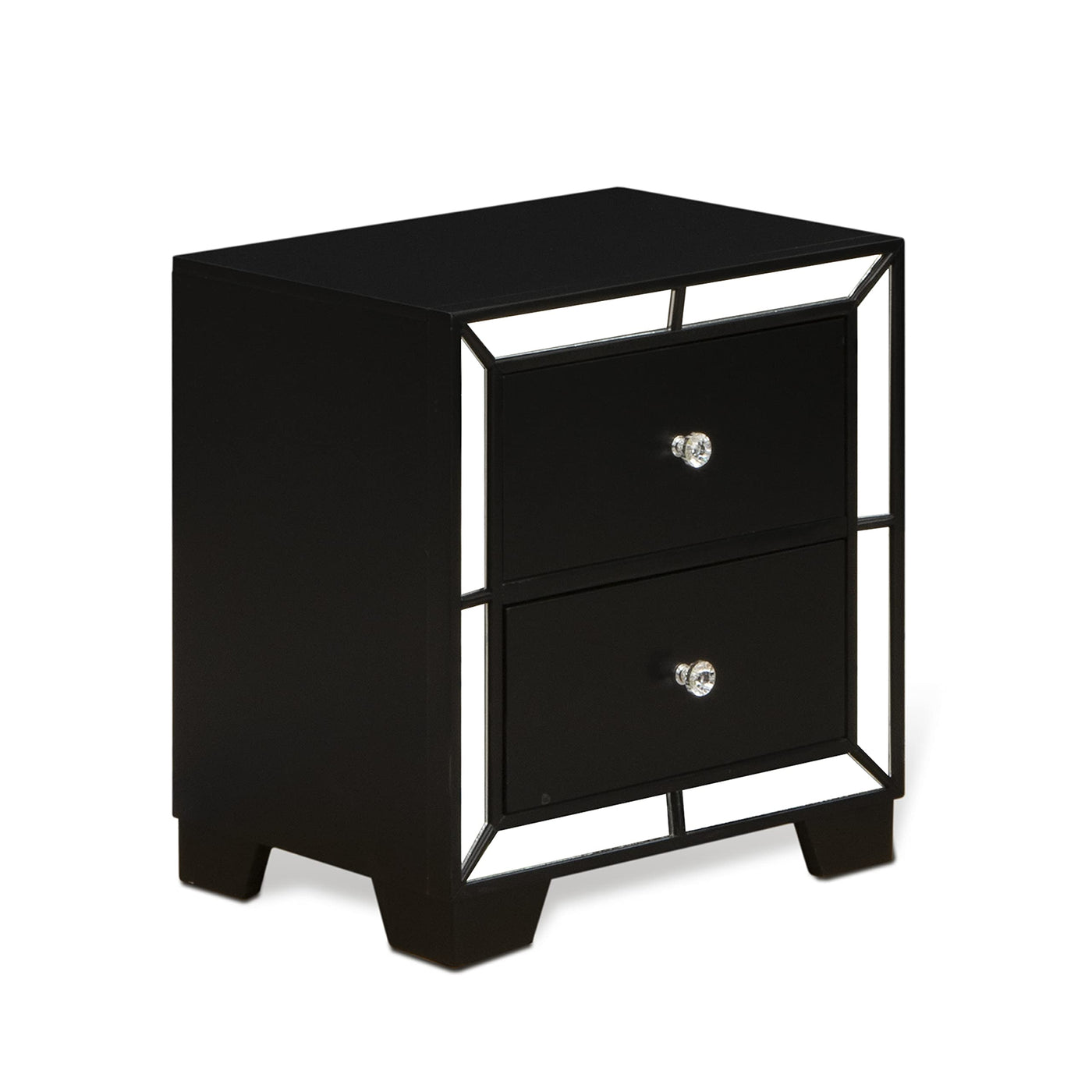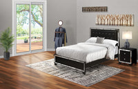 East West Furniture NE11-Q1N000 2-PC Nella Wooden Set Bedroom with Button Tufted Queen Bed and Small Nightstand - Black faux Leather Headboard and Black legs