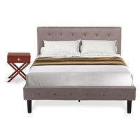 East West Furniture NL14F-1HA13 2 Piece Full Bed Set - Button Tufted Platform Bed Frame - Brown Taupe Velvet Fabric Upholstered Headboard and a Burgundy Finish Nightstand