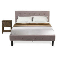 East West Furniture NL14F-1VL07 2 Piece Bedroom Set - Button Tufted Full Size Platform Bed - Brown Taupe Velvet Fabric Upholstered Headboard and a Distressed Jacobean Finish Nightstand