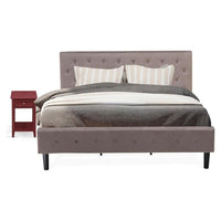 East West Furniture NL14K-1DE13 2 Piece King Bed Set - Button Tufted Platform Bed Frame - Brown Taupe Velvet Fabric Upholstered Headboard and a Burgundy Finish Nightstand