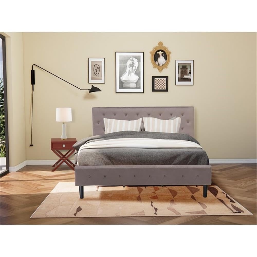 EAST WEST FURNITURE - NL14K-1HA13 - 2 PC BEDROOM SETTransform your bedroom with a touch of traditional elegance using this 2-Piece bed set. It includes a king bed frame with a Velvet upholstered headboard and a wood nightstand. The king platform bed boasts a Black finish with a Brown Taupe Velvet Color, while the mid-century nightstand comes in a charming Burgundy color, effortlessly complementing any room decor. Crafted with sturdy wooden material, this set features the finest Engineered wood, ensuring quality and excellence. With a king size bed and a mid century modern nightstand, it brings versatility and convenience to your bedroom. The low maintenance and budget-friendly nature of this king bed set make it a great choice. Assemble it easily with provided step-by-step instructions and hardware pack, and elevate your bedroom with style and comfort.KING BEDROOM SET FEATURES: Material: Engineered Wood King Bed Frame Fabric: Velvet King Bed Frame Fabric Color: Brown Taupe King Bed Legs Color: Black Nightstand Top Color: Burgundy Bedroom Nightstand Legs Color: Burgundy Dimensions of Bed: Length: 89; Width: 81; Height: 47. Night Stand Dimensions: Length: 19.7; Width: 15.7; Height: 23.6.Include in this Package: 1 King Bed Frame and 1 Nightstand BedroomNote: Mattress is not included with this King Platform Bed Frame.