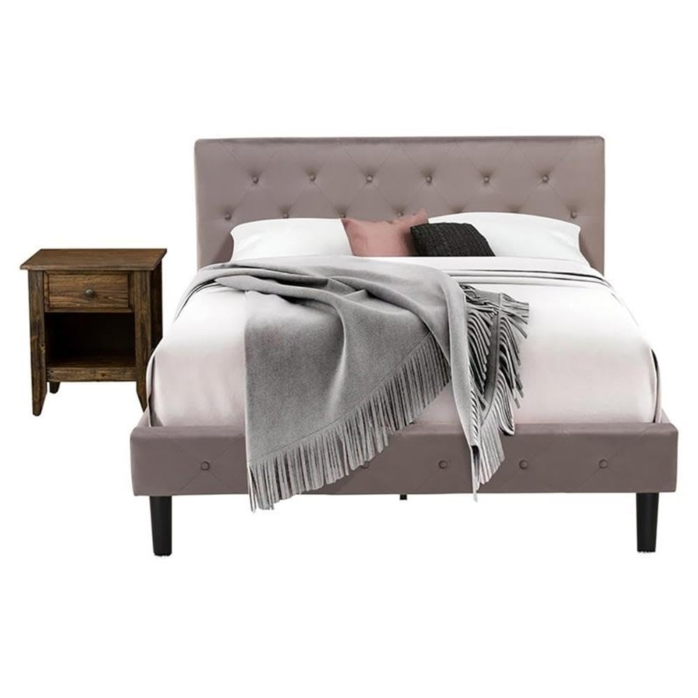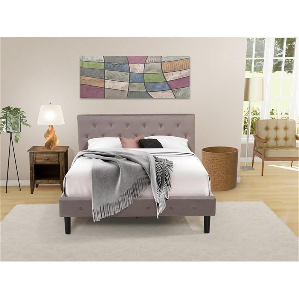 EAST WEST FURNITURE - NL14Q-1GA07 - 2 PIECE BED SETThis stunning modern bedroom set is a shining example of modern style and forward thinking. Add elements of classic glamour to your bedroom with this gorgeous modern bedroom set. Crafted with durable wooden, this queen bedroom set contains a platform bed frame and a night stand to decor any bedroom. This modern bedroom set is sure to enhance any bedroom with quality, versatility, and convenience. This modern bedroom set is low maintenance furniture and it is a great choice because of how budget-friendly it is. This queen bed can be easily assembled with the provided step-by-step assembly instruction and hardware pack.QUEEN SIZE BEDROOM SET FEATURES: Material: Engineered Wood Queen Bed Fabric: Velvet Modern Bed Frame Fabric Color: Brown Taupe Queen Bed Legs Color: Black Wooden Nightstand Top Color: Distressed Jacobean Bedroom Nightstand Legs Color: Distressed Jacobean Dimensions of Bed: Length: 89; Width: 65; Height: 41.30. Night Stand Dimensions: Length: 21; Width: 18; Height: 24.Include in this Package: 1 Queen Bed Frame and 1 Wooden Night StandNote: Mattress is not included with this Queen Size Bed.