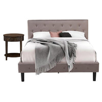 East West Furniture NL14Q-1HI07 2 Piece Queen Size Bed Set - Button Tufted Bed Frame - Brown Taupe Velvet Fabric Upholstered Headboard and a Distressed Jacobean Finish Nightstand