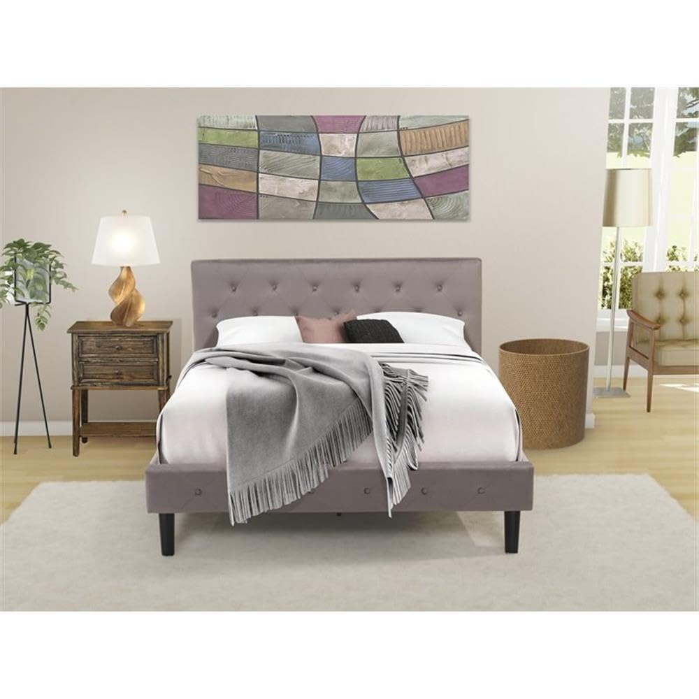 EAST WEST FURNITURE - NL14Q-1VL07 - 2 PIECE QUEEN SIZE BED SETThis stunning bed set is a shining example of innovative design and forward thinking. Add elements of classic glamour to your bedroom with this gorgeous bed set. Manufactured with sturdy wood, this bed set includes a wood bed frame and a night stands to decor any bedroom. This queen bed set is sure to enhance any bedroom with quality, versatility, and convenience. This bedroom set is low maintenance furniture and it is a good choice because of how budget-friendly it is. This queen bed frame can be simply assembled with the provided step-by-step assembly instruction and hardware pack.QUEEN SIZE BEDROOM SET FEATURES: Material: Engineered Wood Queen Bed Fabric: Velvet Queen Bed Frame Fabric Color: Brown Taupe Platform Bed Frame Legs Color: Black Wood Night Stand Top Color: Distressed Jacobean Night Stand Legs Color: Distressed Jacobean Dimensions of Bed: Length: 89; Width: 65; Height: 41.30. Night Stand Dimensions: Length: 22; Width: 15.7; Height: 28.Include in this Package: 1 Platform Bed and 1 Wooden Night StandNote: Mattress is not included with this Queen Size Platform Bed Frame.