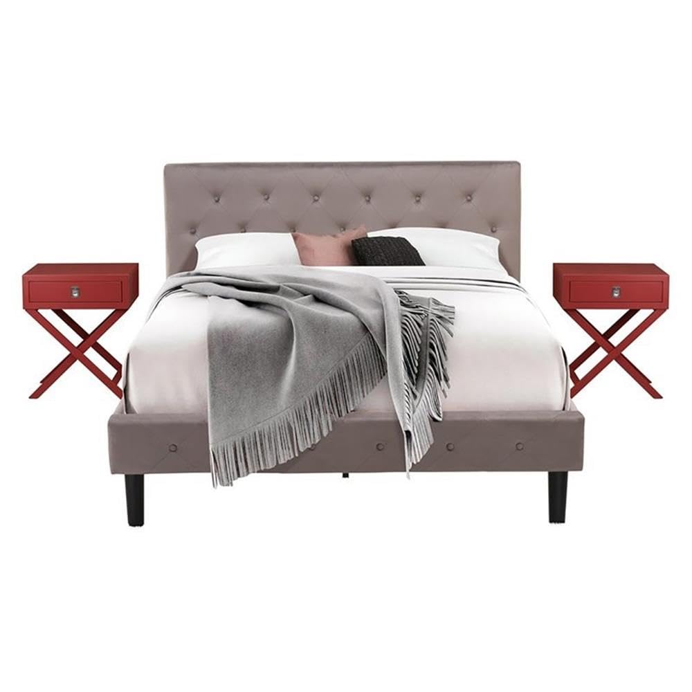 East West Furniture NL14Q-2HA13 3 Pc Bed Set - Button Tufted Queen Frame - Brown Taupe Velvet Fabric Upholstered Headboard and a Burgundy Finish Nightstand