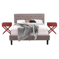 EAST WEST FURNITURE - NL14Q-2HA13 - 3 PC QUEEN BED SETTransform your bedroom's beauty with a touch of traditional elegance using this 3-Piece queen bedroom set. It includes a queen bed frame with a Velvet upholstered headboard and 2 wood nightstands. The bed comes in a sleek Black finish with a luxurious Brown Taupe Velvet headboard, while the nightstand features a charming Burgundy color. Crafted with top-quality Engineered wood, this set exudes superior craftsmanship. Add traditional glamour to your bedroom with this gorgeous queen size bedroom set, featuring a mid-century modern nightstand. It enhances any bedroom with quality, versatility, and convenience. The low maintenance and budget-friendly nature make it a great choice. Assemble the queen bed frame easily with the provided instructions and hardware pack.BED SET FEATURES: Material: Engineered Wood Queen Size Bed frame Fabric: Velvet Queen Size Bed Frame Fabric Color: Brown Taupe Wooden Bed Frame Legs Color: Black Night Stands For Bedrooms Top Color: Burgundy Nightstand Legs Color: Burgundy Dimensions of Bed: Length: 89; Width: 65; Height: 41.30. Night Stand Dimensions: Length: 19.7; Width: 15.7; Height: 23.6.Include in this Package: 1 Wooden Bed Frame and 2 Nightstands.Note: Mattress is not included with this Queen Bed Frame.