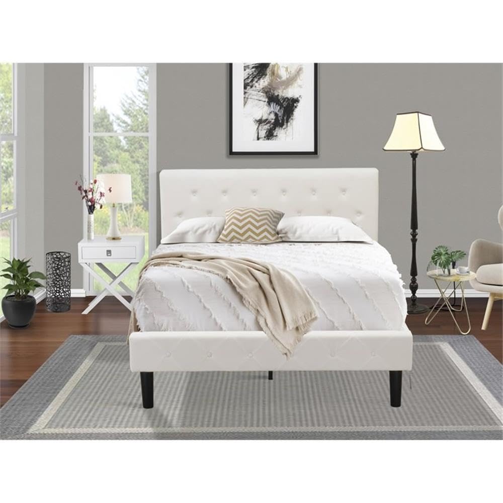 EAST WEST FURNITURE - NL19F-1HA14 - 2 PIECE FULL SIZE BED SETThis stunning bedroom set exemplifies contemporary design and innovative ideas. Infuse your bedroom with timeless charm by adding this beautiful bed set. Presented in a sleek Black finish, the platform bed frame perfectly pairs with the White Velvet Color of the bed. Additionally, the bedroom nightstand features a White color, creating an effortlessly appealing color combination that complements any bedroom decor. Crafted from robust wood, this set includes a modern bed frame and a compact nightstand to elevate the decor of any bedroom. With its quality, versatility, and convenience, this wooden bedroom set is guaranteed to enhance your sleeping space. Not only is this bed set easy to maintain, but it is also an excellent budget-friendly option. You can effortlessly assemble this full-size bed using the provided step-by-step instructions and hardware pack.WOODEN BEDROOM SET FEATURES: Material: Engineered Wood Full Size Platform Bed Frame Fabric: Velvet Full Size Bed Fabric Color: White Full Bed Frame Legs Color: Black Small Nightstand Top Color: Urban Gray Night Stand Legs Color: Urban Gray Dimensions of Bed: Length: 84; Width: 59; Height: 41.30. Night Stand Dimensions: Length: 19.7; Width: 15.7; Height: 23.6.Include in this Package: 1 Full Size Bed Frame and 1 NightstandNote: Mattress is not included with this Platform Bed Frame.